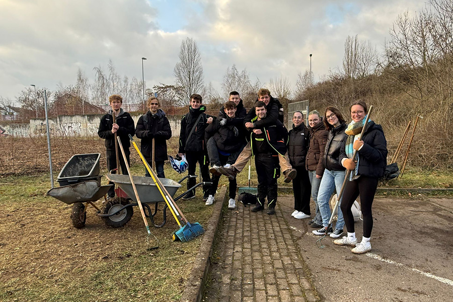 Ein dumpfes Knirschen liegt an diesem grauen Vormittag über der Wallstraße, direkt an der Magdeburger Brücke. Schubkarren rollen über den feuchten Boden, irgendwo plumpst eine Ladung Hackschnitzel auf die Erde. Zwischen den kahlen, kaum meterhohen Holzstengeln, die im Winterlicht stehen wie feine Striche, bewegen sich Zwölftklässler des Stephaneums. „Kommt, wir ziehen das jetzt durch“, ruft Lehrerin Doreen Steinmetz ihrer Gruppe zu. Sie hält alles im Blick. „Die Schüler verdienen sich mit der Aktion etwas zur Abi-Kasse dazu. Es gab eine Spende – dafür müssen sie aber auch etwas leisten“, sagt die Pädagogin und lächelt, als sie sieht, dass trotz des Novemberwetters der Eifer ihrer Schüler nicht nachlässt.