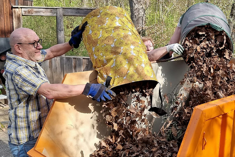 Nach der offiziellen Begrüßung am Samstag wurden die etwas mehr als 60 Helfer in einzelne Gruppen aufgeteilt und schon ging’s los. Allein auf dem Zoo-Gelände galt es, riesige Mengen an Laub einzusammeln und in die bereitgestellten Sammelcontainer zu bringen. Holger Dietrich vom Bauwirtschaftshof informierte, dass insgesamt acht dieser Container zur Verfügung stünden, vier vom Bauwirtschaftshof und vier weitere von Sponsoren. Aber das Laub war es dennoch nicht allein. Alte Äste, teilweise schon zuvor eingesammelt und aufgeschichtet, mussten auf Länge geschnitten werden, damit sie in die Container passten. Andere Akteure waren mit einem Eimer und Schrubber-Bürsten unterwegs. Sie rückten ,dem Winterschmutz auf den zahlreichen Bänken zu Leibe. Die Privatinitiativen einiger Helfer gingen sogar so weit, dass verschiedene Blumen aus eigenen Gärten gespendet, mitgebracht und direkt auf den Grünflächen im Zoo eingepflanzt wurden. Insgesamt dürfte der Frühjahrsputz in diesem Jahr wieder eine erfolgreiche Aktion gewesen sein. Auch von den anderen eingangs erwähnten zu reinigenden Sehenswürdigkeiten rund um die Alte Burg kamen positive Rückmeldungen über erfolgreiche Putzaktionen, so AKA-Vorstand Matthias Poeschel abschließend. Das Wetter hat ganz gut mitgespielt und zum Abschluss gab es am Dschungelcafé wie immer für alle als kleines Dankeschön ein gemeinsames Mittagessen: Erbsensuppe mit Bockwurst und dazu natürlich auch ein Getränk.